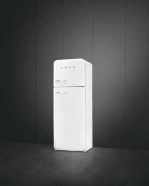 FAB30RWH5Køleskab fra Smeg i hvid med separat fryserum, grøntsagsskuffe og LED belysning.