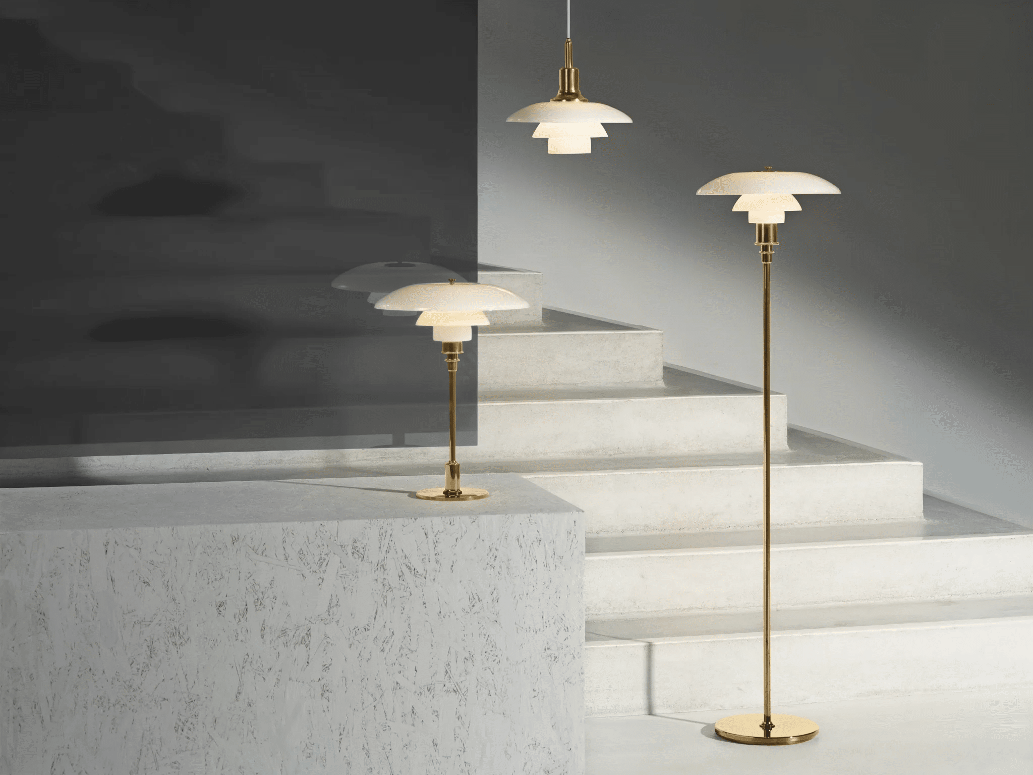 Poul Henningsen designede 3-skærmssystemet allerede i 1926, hvor PH i samarbejde med Louis Poulsen tegnede de første lamper til en udstilling i Paris. Gennem hele sit liv søgte PH at skabe det blændfri lys, rette lyset hen, hvor der var brug for det og skabe bløde skygger. PH designede således ikke blot en lampe, men et helt system, og der blev igennem årene produceret omkring tusind forskellige modeller. Det mundblæste opale glas består af tre lag glas. Et klart sandblæst på indersiden, et hvid lag i midten og et blankt klart lag yderst. Samlet giver det et smukt difuseret lys opefter samtidig med et behageligt reflekteret lys nedefter. PH lampernes numre refererer til skærmstørrelsen. PH 3½-2½ har en overskærm på ca. 35 cm, og den blev i sin nuværende form introduceret i 2002 i højglansforkromet, i en sort metalliseret version i 2017 og messing metalliseret i 2019. Læs hele beskrivelsen