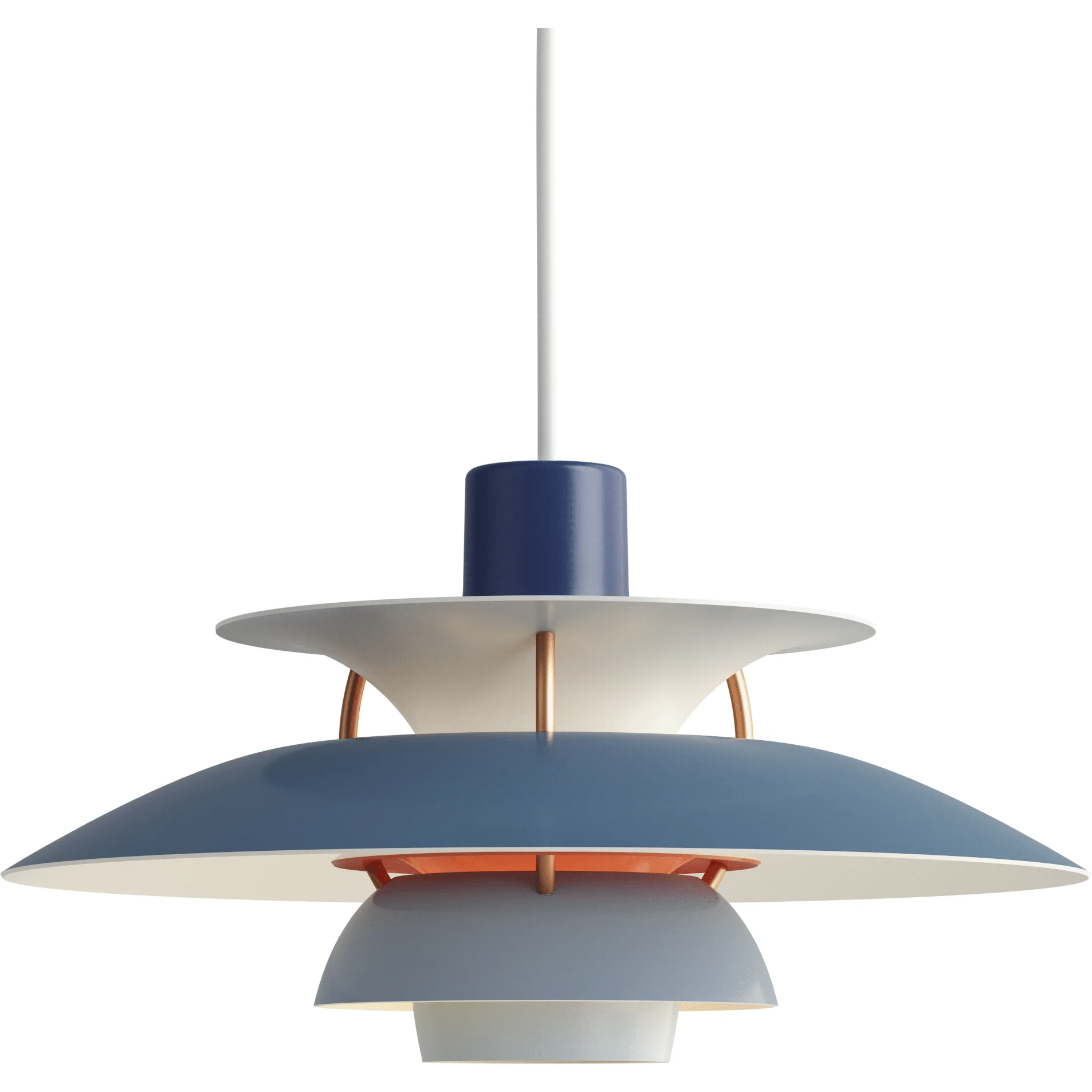 PH 5 Mini er med en diameter på 30 cm en nedskaleret version af den ikoniske PH 5, der har en diameter på 50 cm. Den blev udviklet af Poul Henningsen (PH) i 1958, der ville skabe den ultimative blændfri pendel. Uanset hvordan lampen installeres, og lige meget hvilken lyskilde man benytter, så er pendlen blændfri. PH 5 Mini introduceres både i den klassiske hvide version og i en moderne hvid. Endvidere fås den i seks farvevarianter, hvor farven er mørkets øverst og nuancen gradueres nedefter fra skærm til skærm. Stagene er lilla på 'Classic' og bronzefarvede på de øvrige syv varianter. Afblændingsringenes farve giver kontrast til de øvrige farvenuancer.